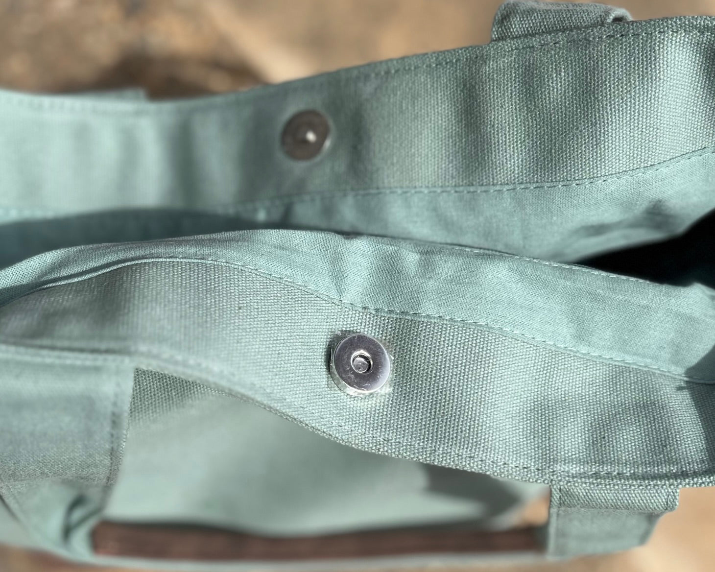 Crafted from soft cotton canvas and faux leather, these tote bags are finished with quirky matte nickel rivets and a magnetic closure. The spacious interior, lined with cotton sheeting, also includes a convenient zipper pocket. Dimensions of 11.5"W x 15"H x 6.75"D ensure plenty of room for all your beach essentials.